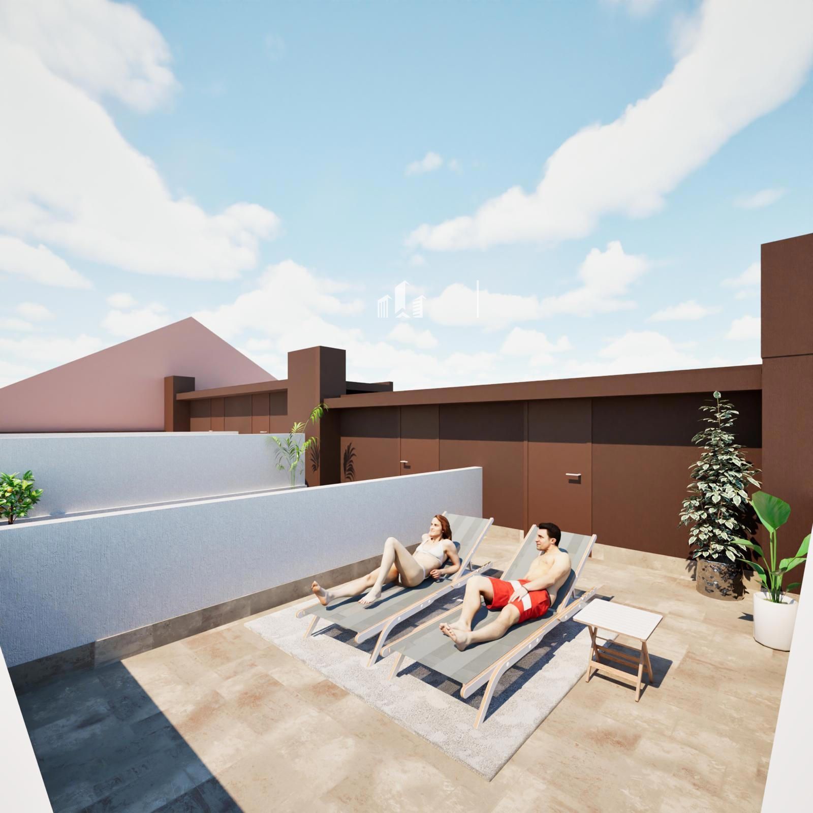 La buhardilla en la planta superior es un espacio luminoso y versátil, con techos altos, amplias zonas de almacenamiento y salida a un solárium privado, donde podrás relajarte con total intimidad en pleno centro de Rubí.